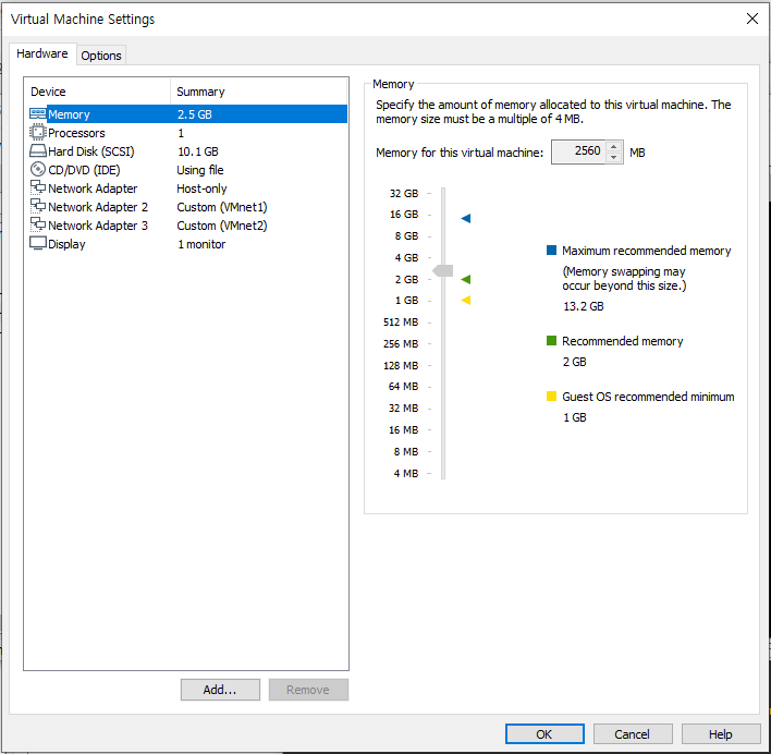 Network Adapter3 -> Custom에서 VMnet2 (testweb 라인)