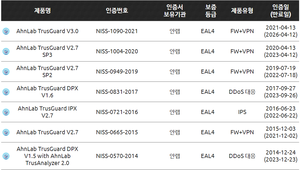 ※trusgaurd : 안랩 네트워크 보안제품군 모델명