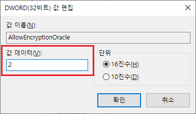 오른쪽 화면에 "암호화 오라클 수정" 항목을 볼 수 있다.